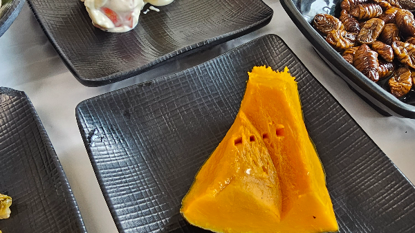사과샐러드 번데기 해초무침 단호박찜