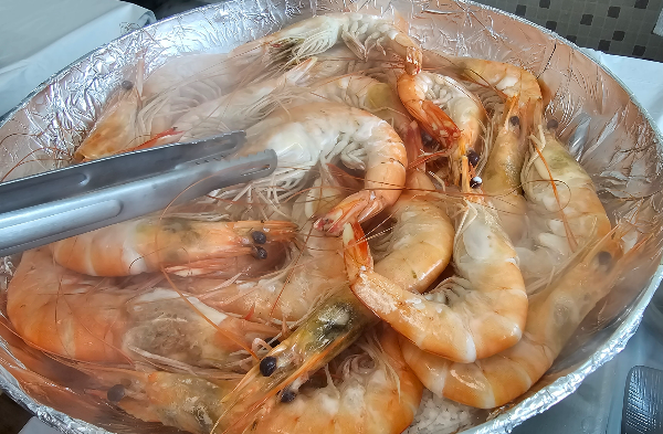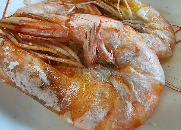 소금에 올라가는 대하의 모습입니다