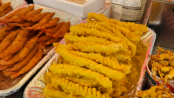 대하튀김 인삼튀김 꽃게튀김 다양한 튀김을 팔고 있습니다