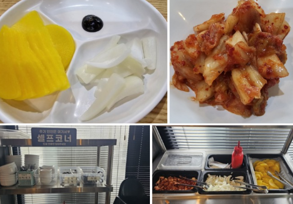 식당 내에서 셀프바에 김치와 반찬이 추가로 있어서