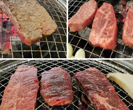 불판 위에 올라간 고기 모습입니다