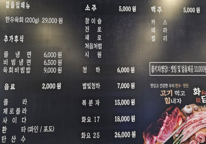 화담정육식당 가격표