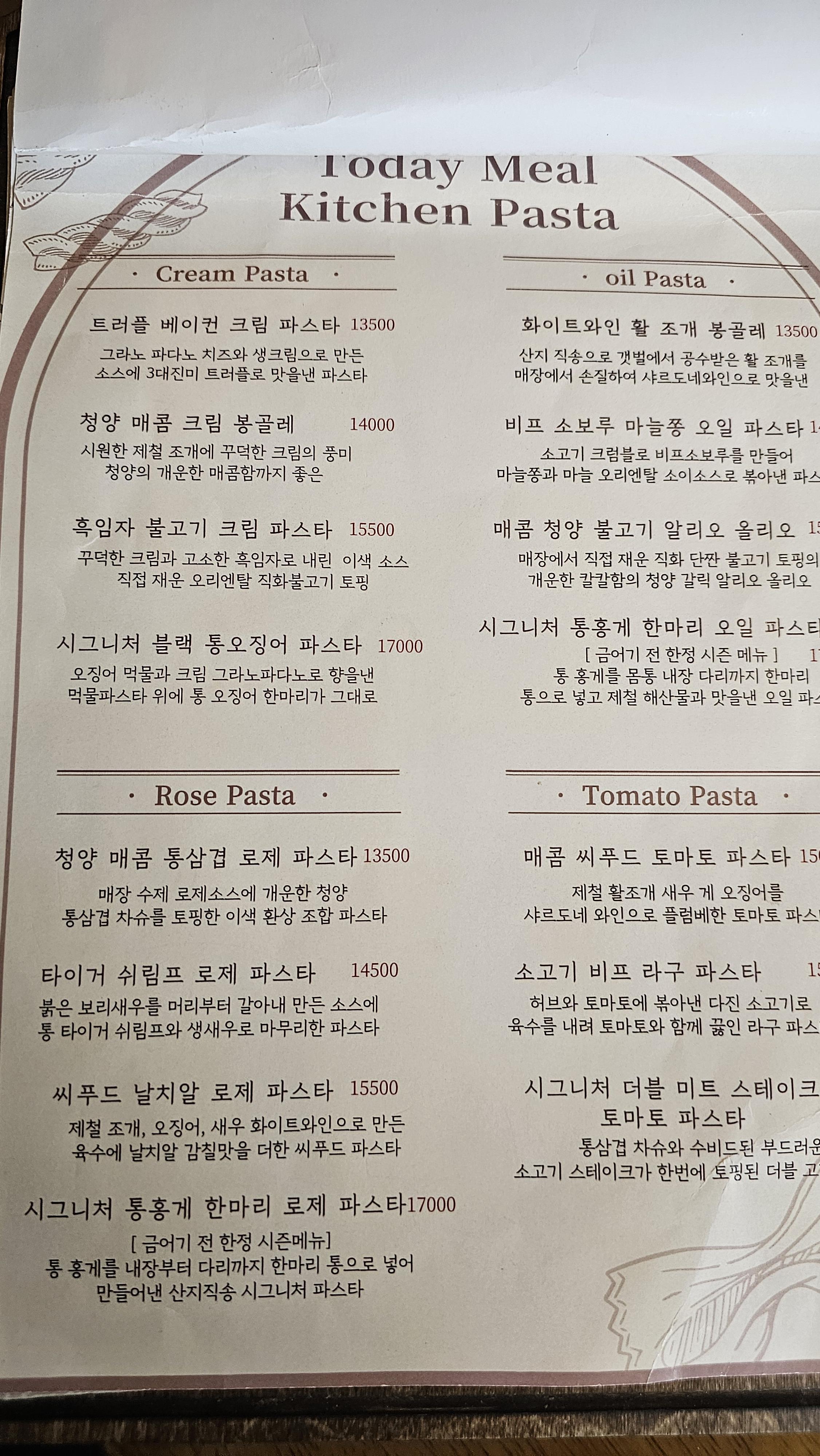 무조건 청양 봉골레 크림 파스타를 추천합니다