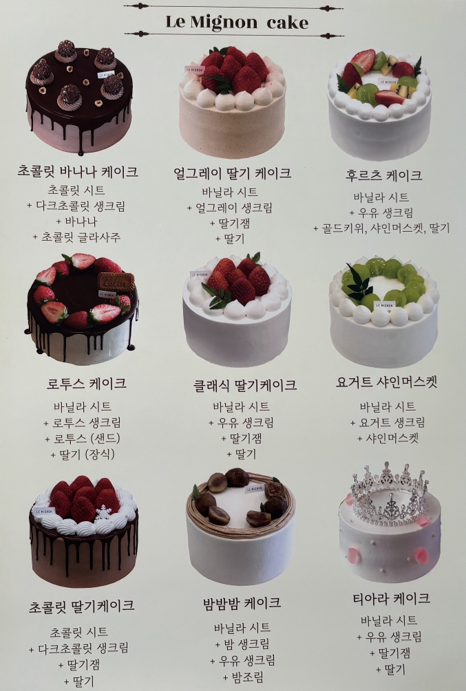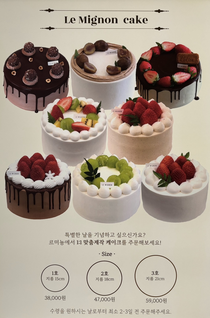 다음은 르미뇽 케익 메뉴입니다