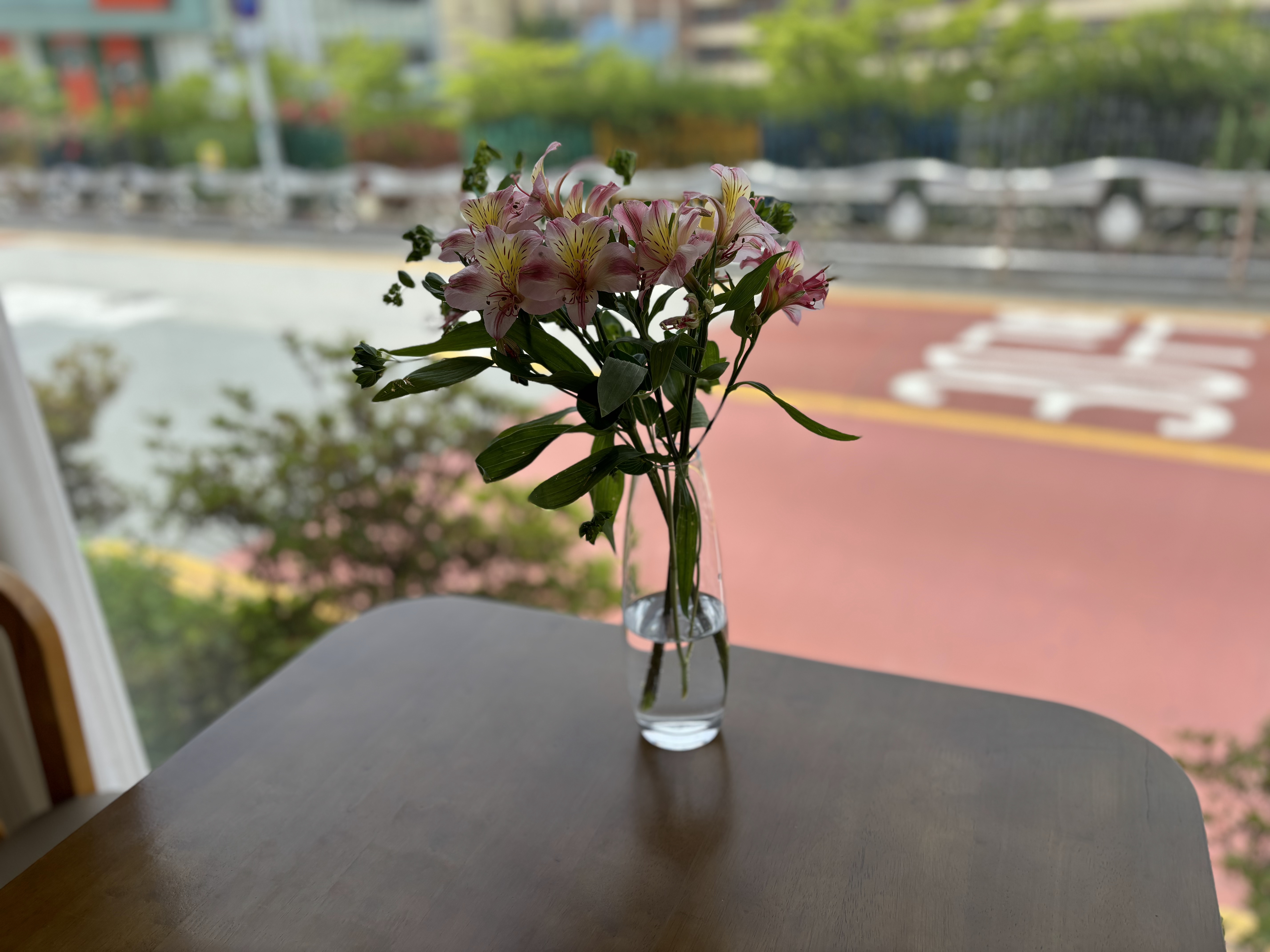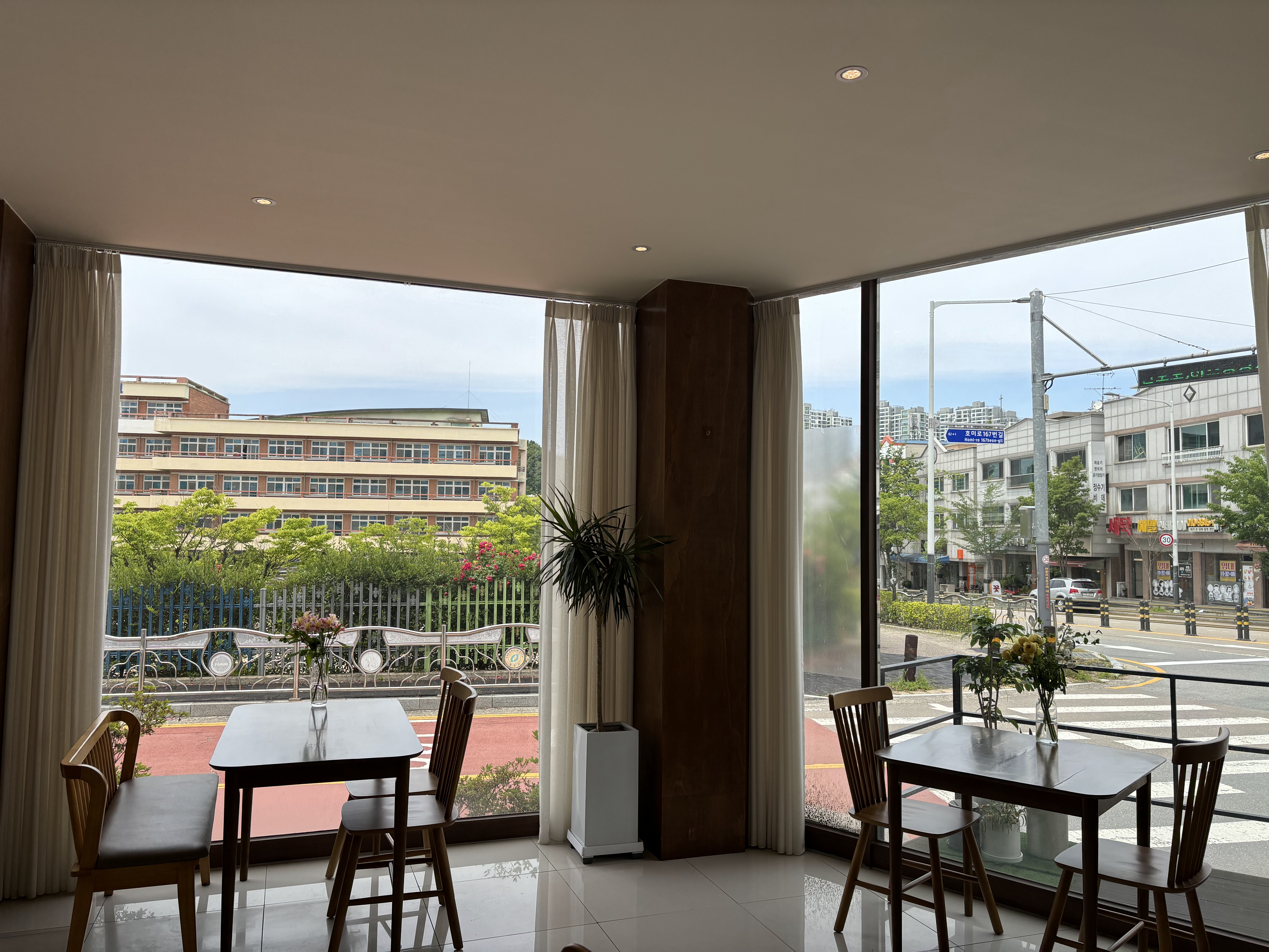 테이블마다 계절 꽃이 있어서
