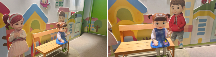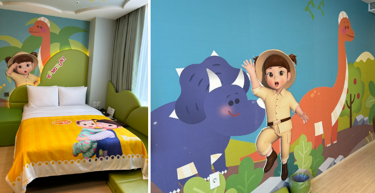 아이들이 좋아하는 콩순이와 공룡이 그림으로 이곳 저곳에