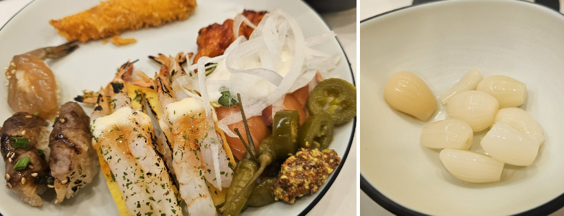 계란 새우초밥 소고기 초밥 새우튀김과 락교