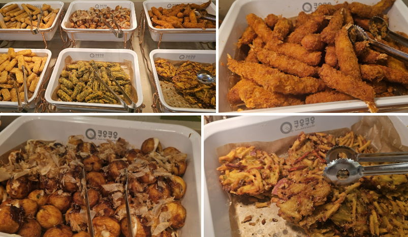 김말이 야채튀김 츄러스 새우튀김 등등이 있습니다
