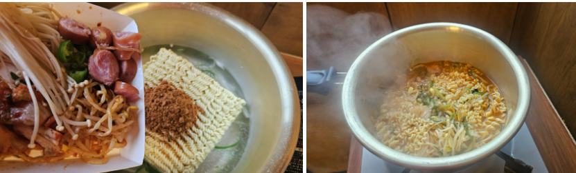 쌈장 물 라면용 냄비 등등 기본적인 기구들이 있어서