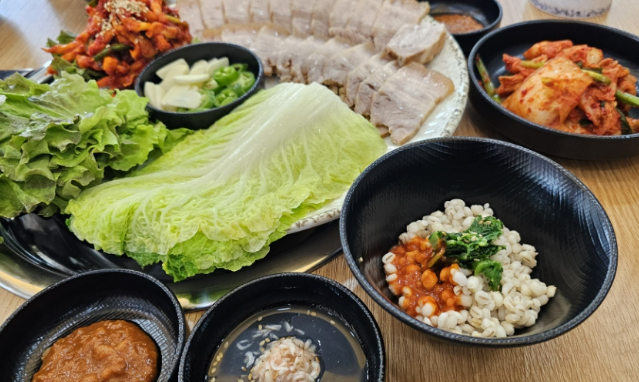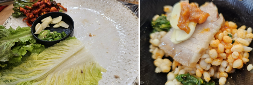 열심히 먹은 보쌈과 보리밥 사진입니다