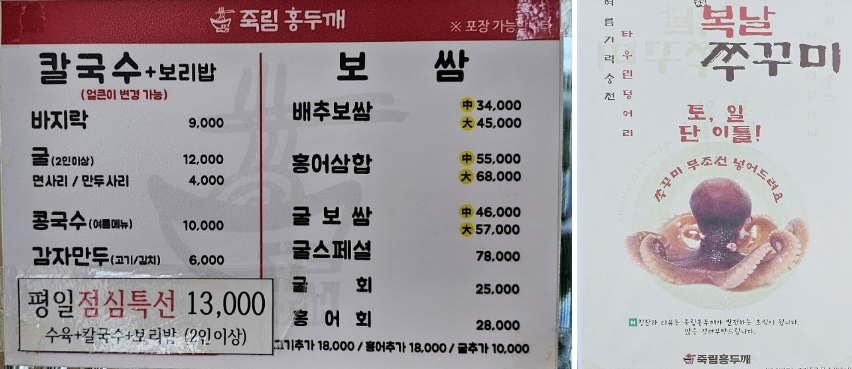 바지락칼국수에 주꾸미가 들어갈 수 있었습니다