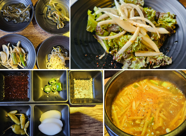 밑반찬은 소고기의 느끼함을 잡아주는 음식들로