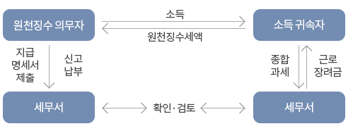 지급하는 원천징수 의무자가 소득자로부터 세금을 미리 징수하여 국가에 납부하는 제도를 말합니다