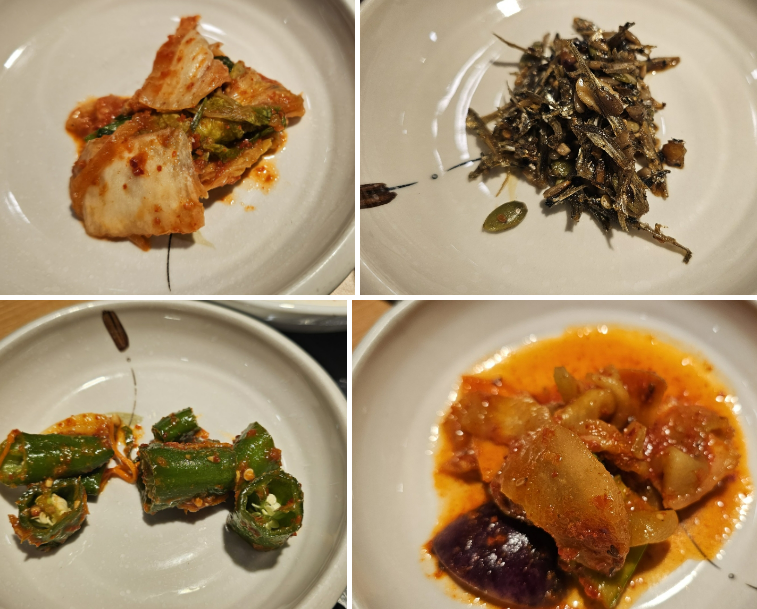 여느 한정식처럼 김치와 몇 가지 밑반찬이 제공됩니다