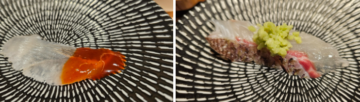 다음은 광어 초밥과 연어초밥이 제공됩니다