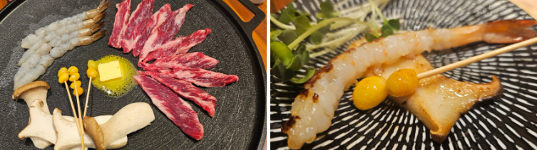 소갈비살과 버섯 그리고 새우와 은행이 나오는데