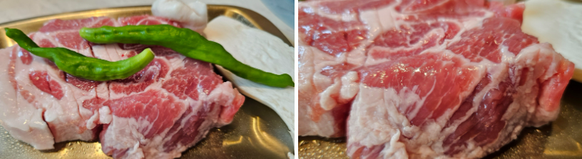 목살과 함께 나오는 꽈리고추를 구워서 드시면