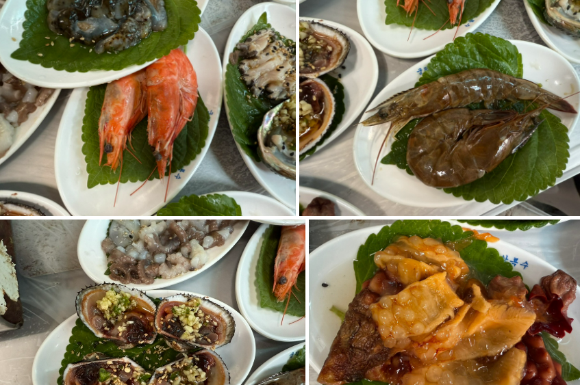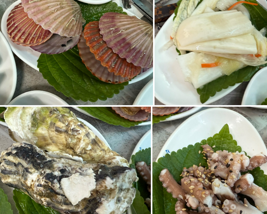 구성을 맞추기 위한 가짓수가 아니라 신선하고 맛있는 해물이 종류별로 나와서