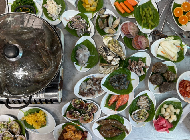 수산에서 회나 해산물을 구입해서 장집에서 먹는 시스템입니다