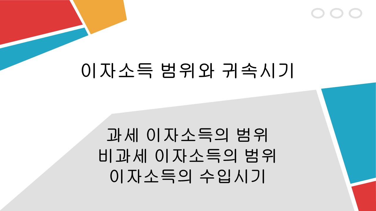 이번 포스팅은 이자소득의 범위와 이자소득의 귀속시기에 관한 내용입니다