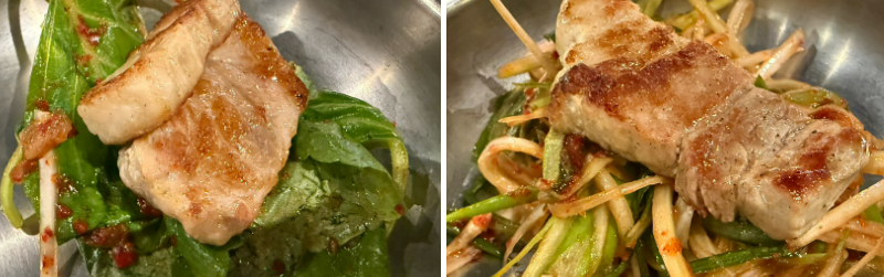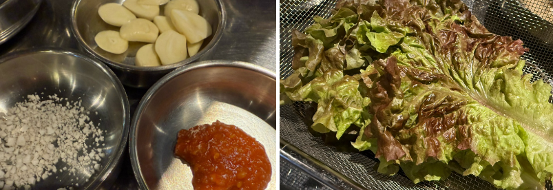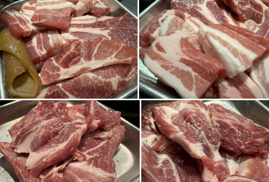위에 사진 2장은 처음에 주문한 삼겹살 2인분과 목살 2인분 사진입니다
