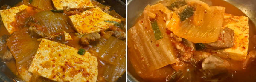 푹은 익은 김치와 큼직한 두부 그리고 고기가 많이 들어가서