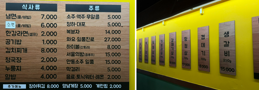 막바우 고기 메뉴의 구성은 아래와 같습니다
