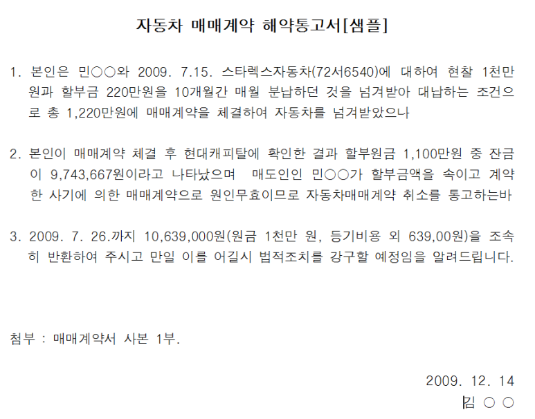 c. 문제 제기, 최고장 등 (일상생활에 발생하는 법률적인 조치가 필요한 문제 등)
