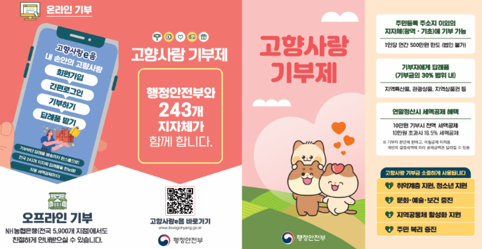 기부한 개인은 고향을 돕고 세액공제 혜택 그리고 답례품을 받을 수 있습니다