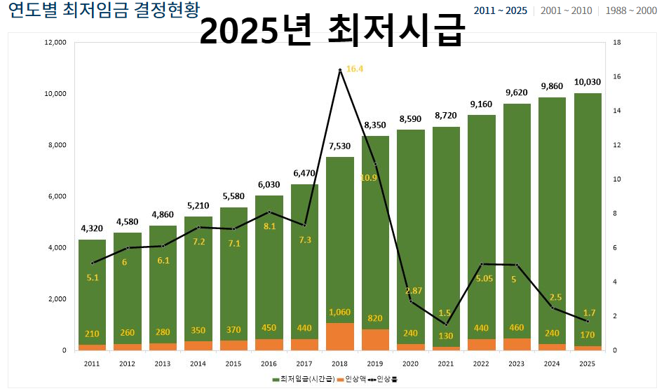2025년 최저시급 시간당 10,030원 사상 처음 1만 원대를 돌파