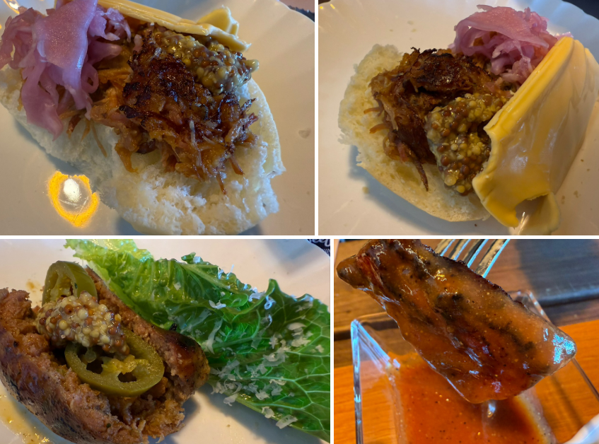 따듯하게 나오는 미니 번에 고기와 피클이나 채소를 함께 곁들이면