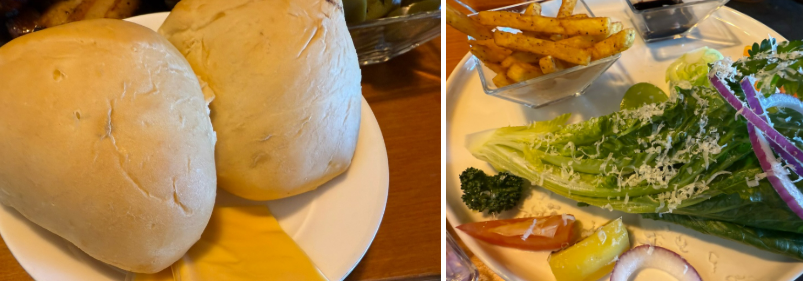 사이드로는 샐러드와 그리고 미니 번 과 음료 2잔으로 제공됩니다