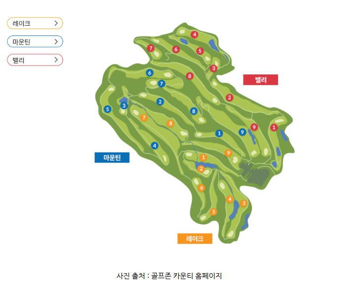 레이크 마운틴 벨리 3개 코스로 구성되어 있습니다