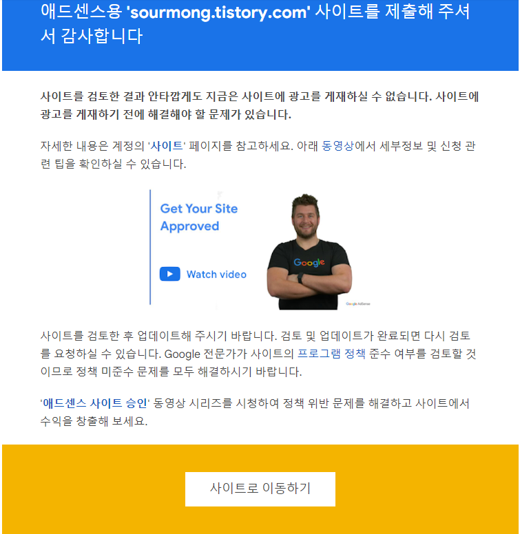 일단 설명을 보기 전에 6번 만에 통과한 저의 티스토리를 둘러보시는 것 추천드립니다