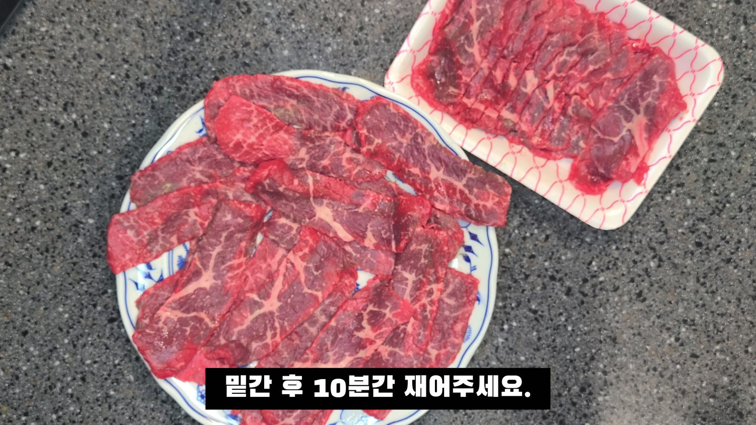 밑간 할 때 겹쳐서 쌓아 주시면 좀 더 간이 골고루 스며들기 때문에 여러 층으로 쌓아 주는 것을 추천합니다