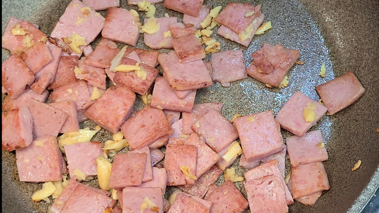 마늘과 함께 잘 볶아진 스팸의 모습입니다