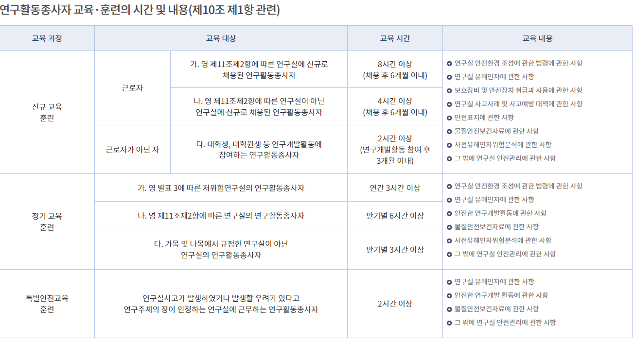 (연구활동종사자와 연구실책임자 의 교육 과정이 다른 점도 참고하시길 바랍니다)