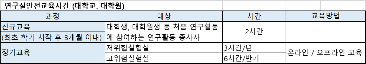 연구실에 근무하는 인원 : 반기별 6시간 이상