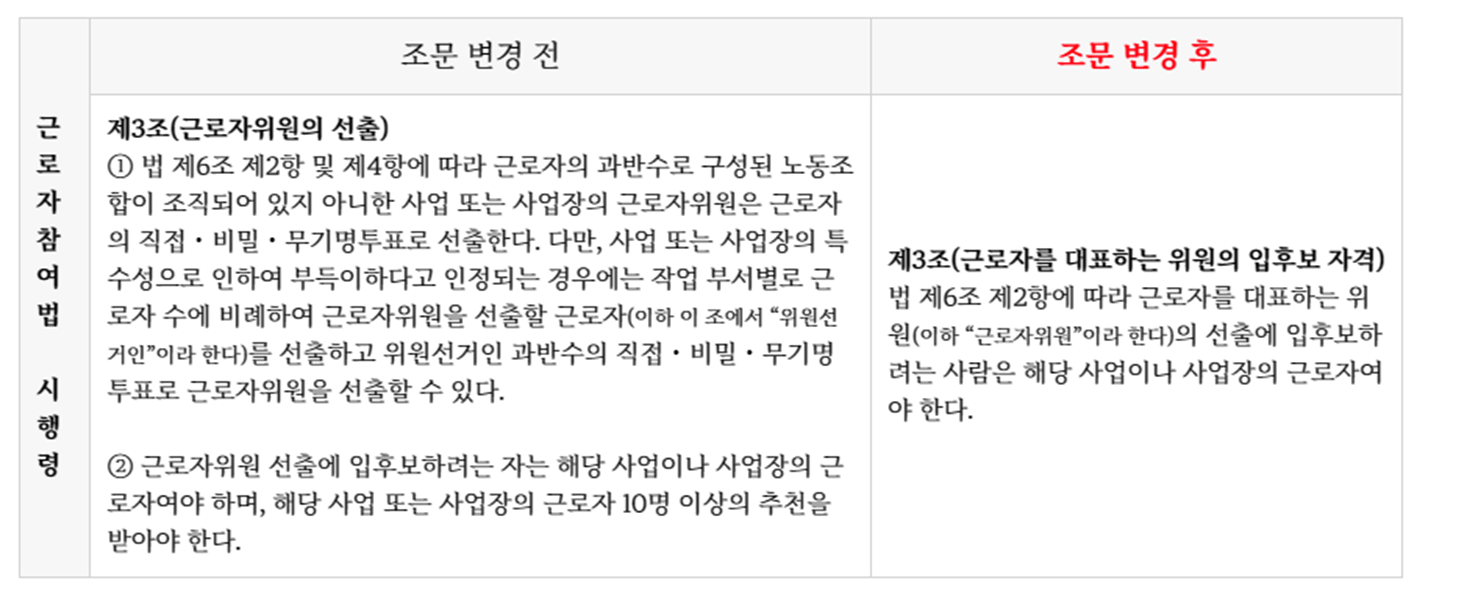 22.12.11부터 변경되는 노사협의회 관련 개정사항은 아래와 같습니다